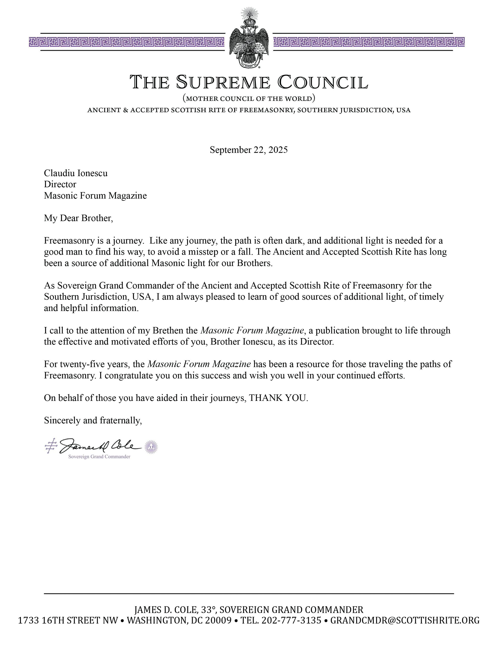 Microsoft Word – SGC Cole appreciation ltr to C Ionescu